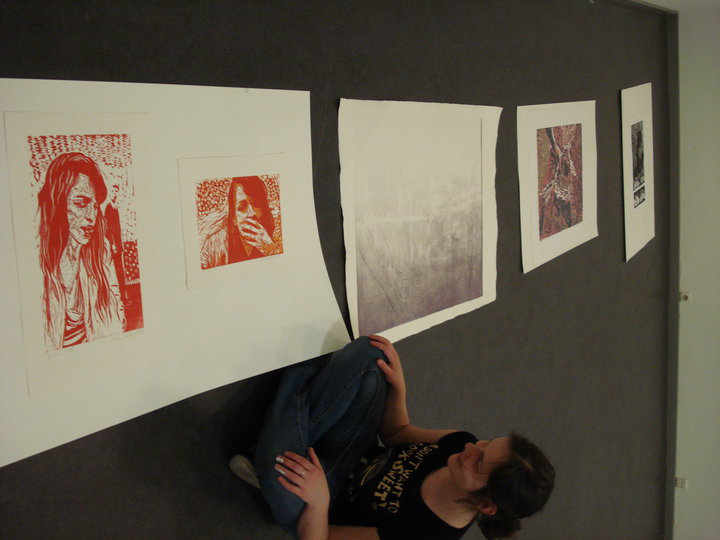 My adventure with lino has started a few years ago. I made then a portrait of my sister with her children. When I look at this now I see so many faults and I know it is so unperfect. But on the other hand I miss now the freedom of my first linocut's picture, the emotions, intuition and uconscious. But yeah... the teachers exptect from me to be very aware with everything what I am making. Nowadays everything is just about the concept and presentation...